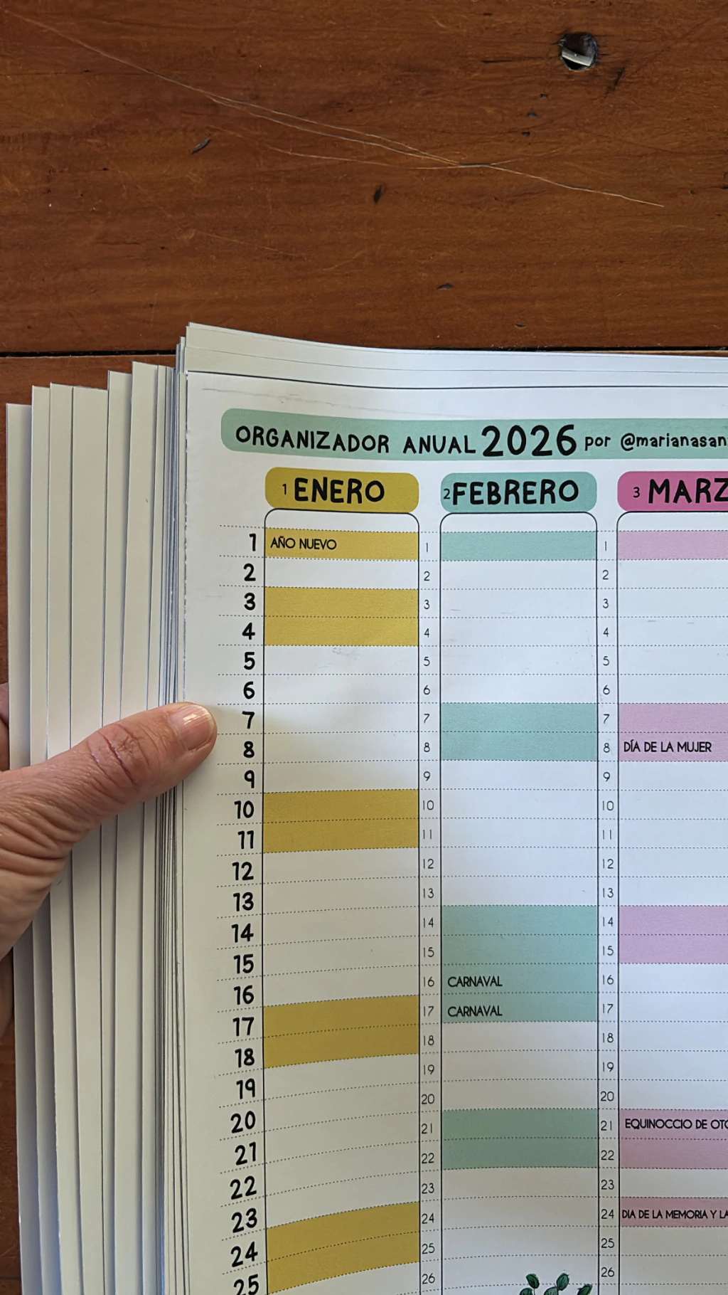 Que el 2026 te encuentre con tus tiempos bajo control. Con este planner anual vas a poder organizar y planificar tu año de manera súper fácil y ordenada, para que no se te pase una fecha importante ni te quedes sin esas escapadas de finde largo por no preveerlas.