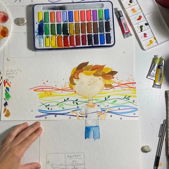 "Respiro Arcoiris" es un libro de MEDITACIÓN GUIADA para niños y niñas (y yo digo que también para adultos), redactado maravillosamente por Victoria Bunge e ilustrado por mí. Sus páginas te invitan a releerlas todas las noches antes de dormir, a respirar profundo, mirar para adentro y conectar con nosotros mismos.